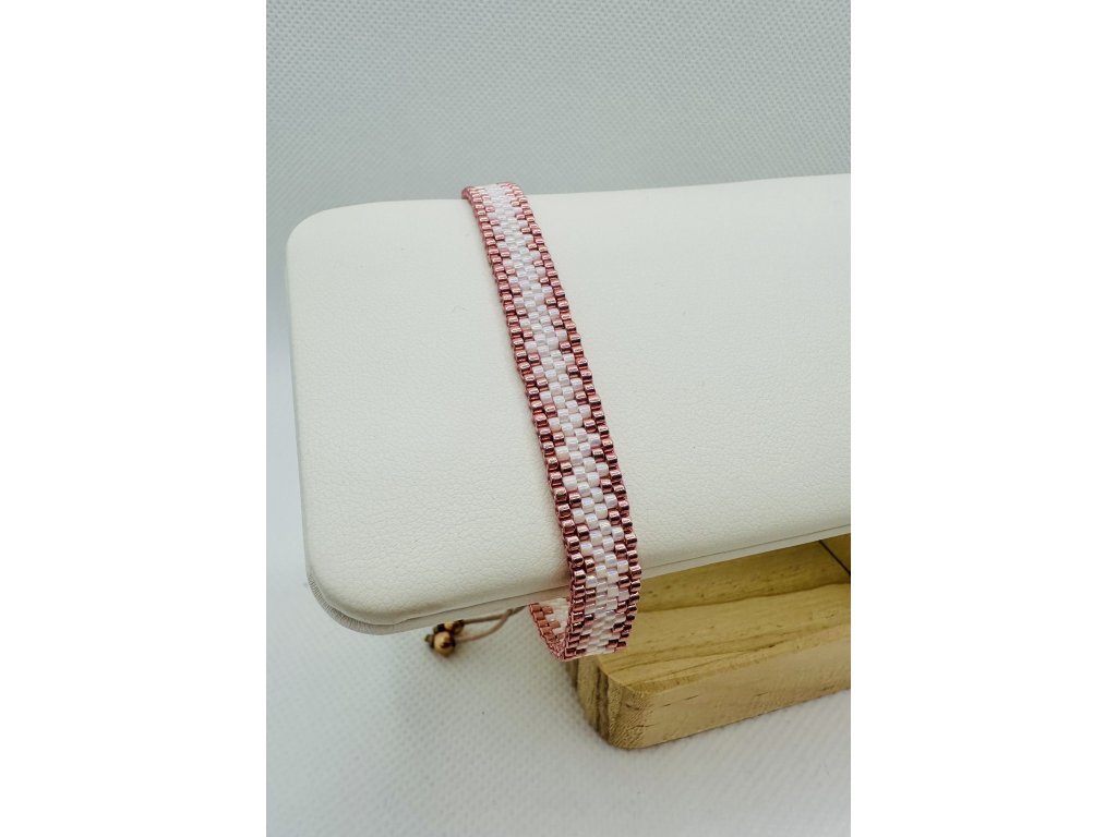 Náramek šitý peyote stehem z Miyuki korálků vel. 11. v bílé. a růžové barvě.